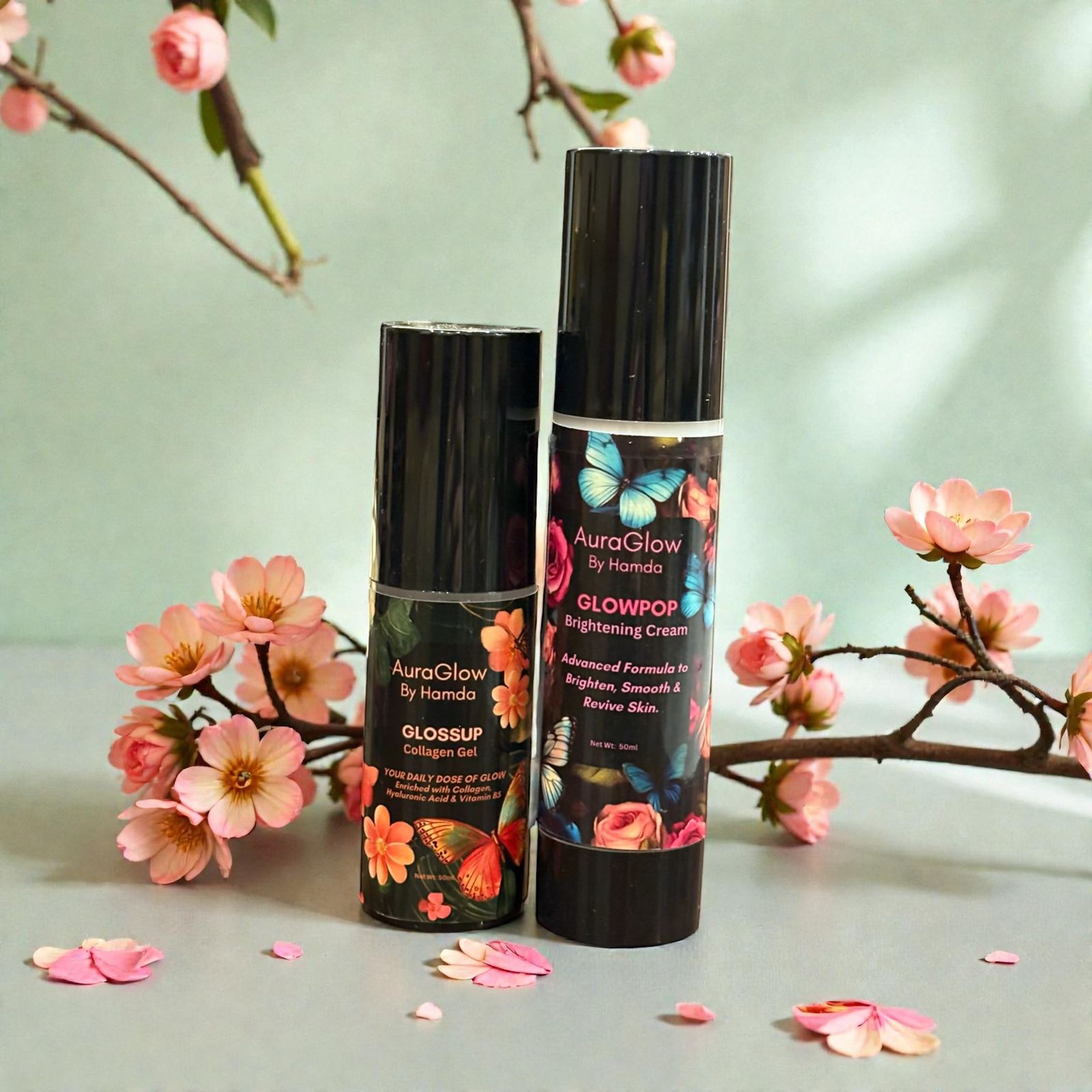 This duo pairs GlowPop Brightening Cream to correct pigmentation and boost radiance with GlossUp Collagen Gel to hydrate, firm, and seal in moisture.