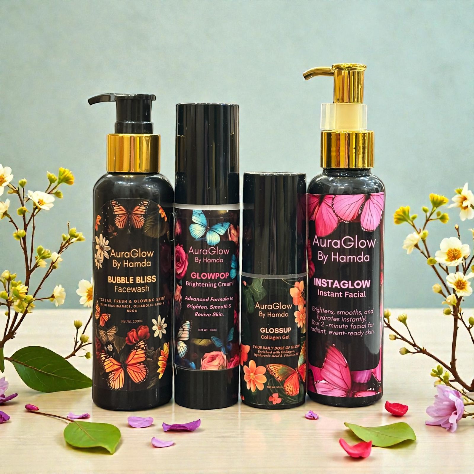 This premium set covers every step of your glow routine — cleanse, instant radiance, deep hydration, and targeted brightening. From daily care to special occasions, this bundle delivers smooth, luminous, confident skin at every stage.